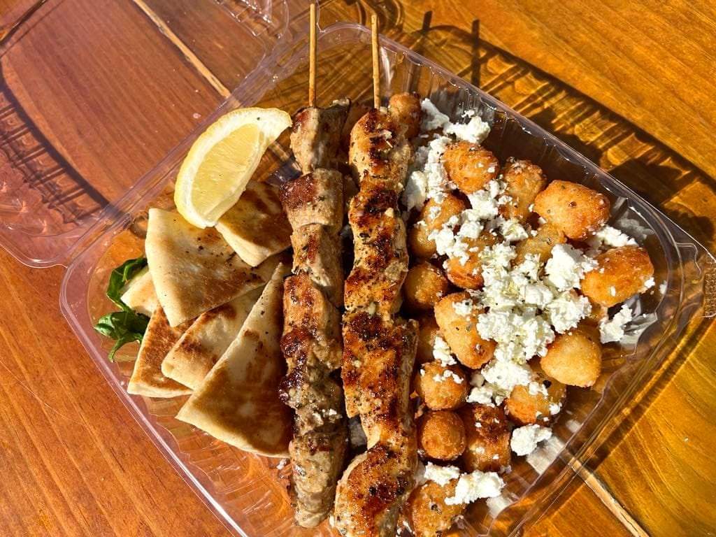 Disclaimer: this is my first ever review. At first glance, this is an adorable little shop with great vibes and chill music. The beautiful tattooed woman behind the counter is heaven sent. AND THE FOOD. I live in NYC where I have access to some of the best food, and when I say this gyro is phenomenal- I mean I’m speechless. And please do not get me started on the feta tots. Bury me in feta tots. I’m writing this sitting outside. This small business is such a gem. 10/10.