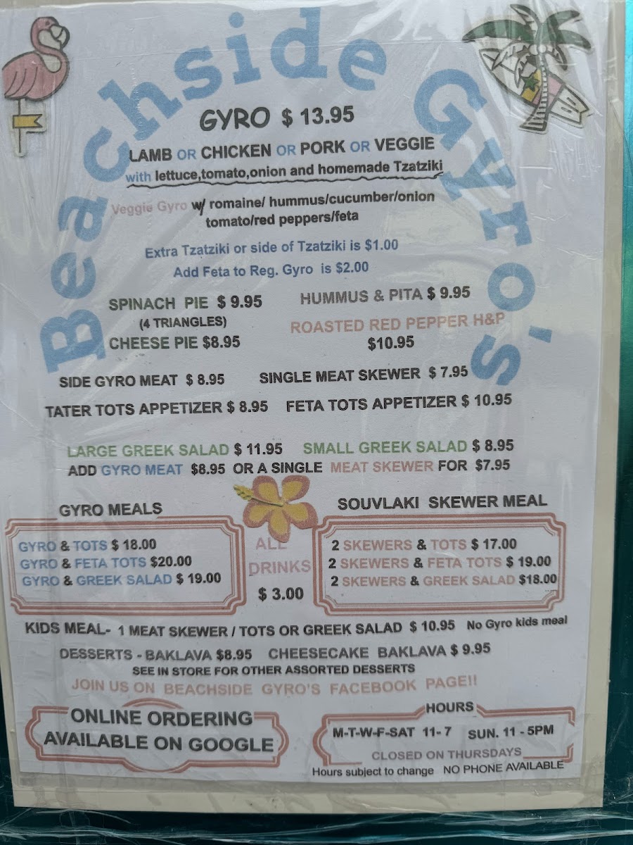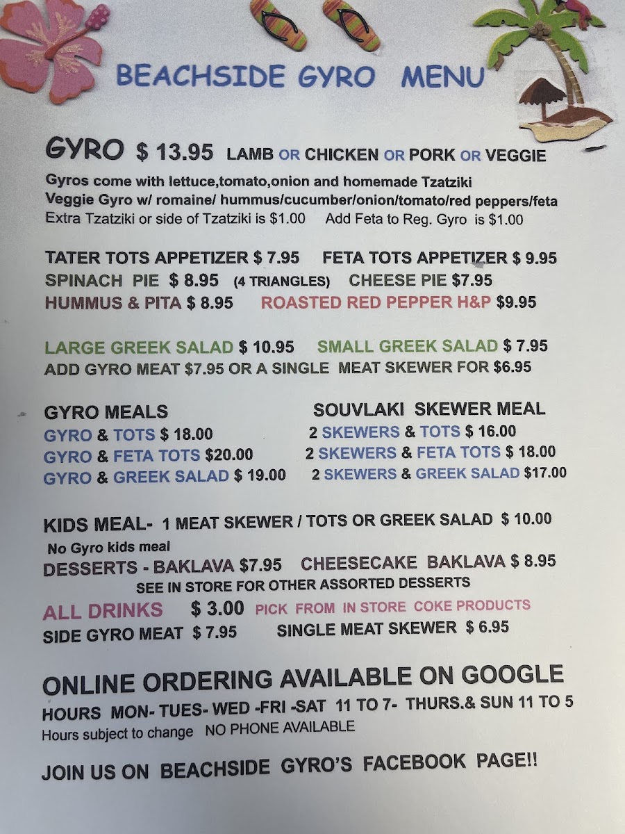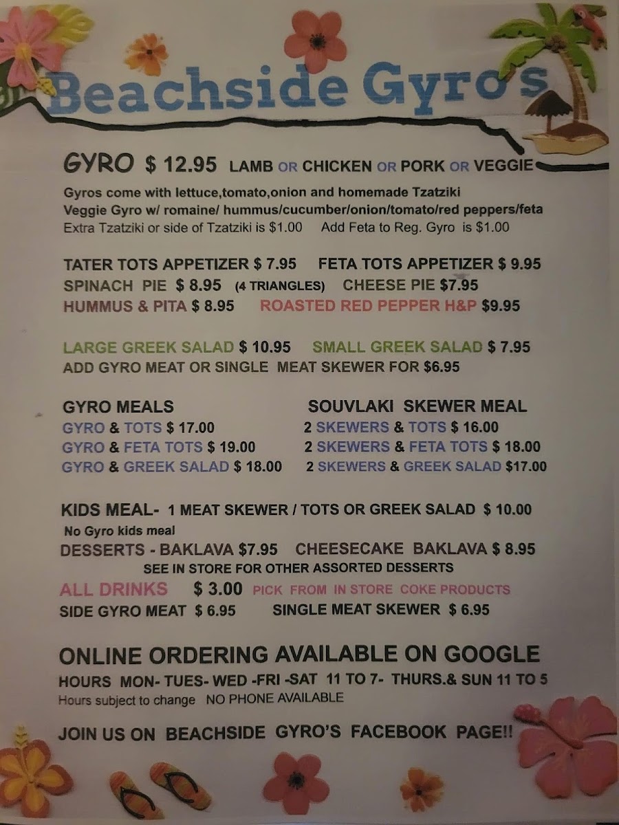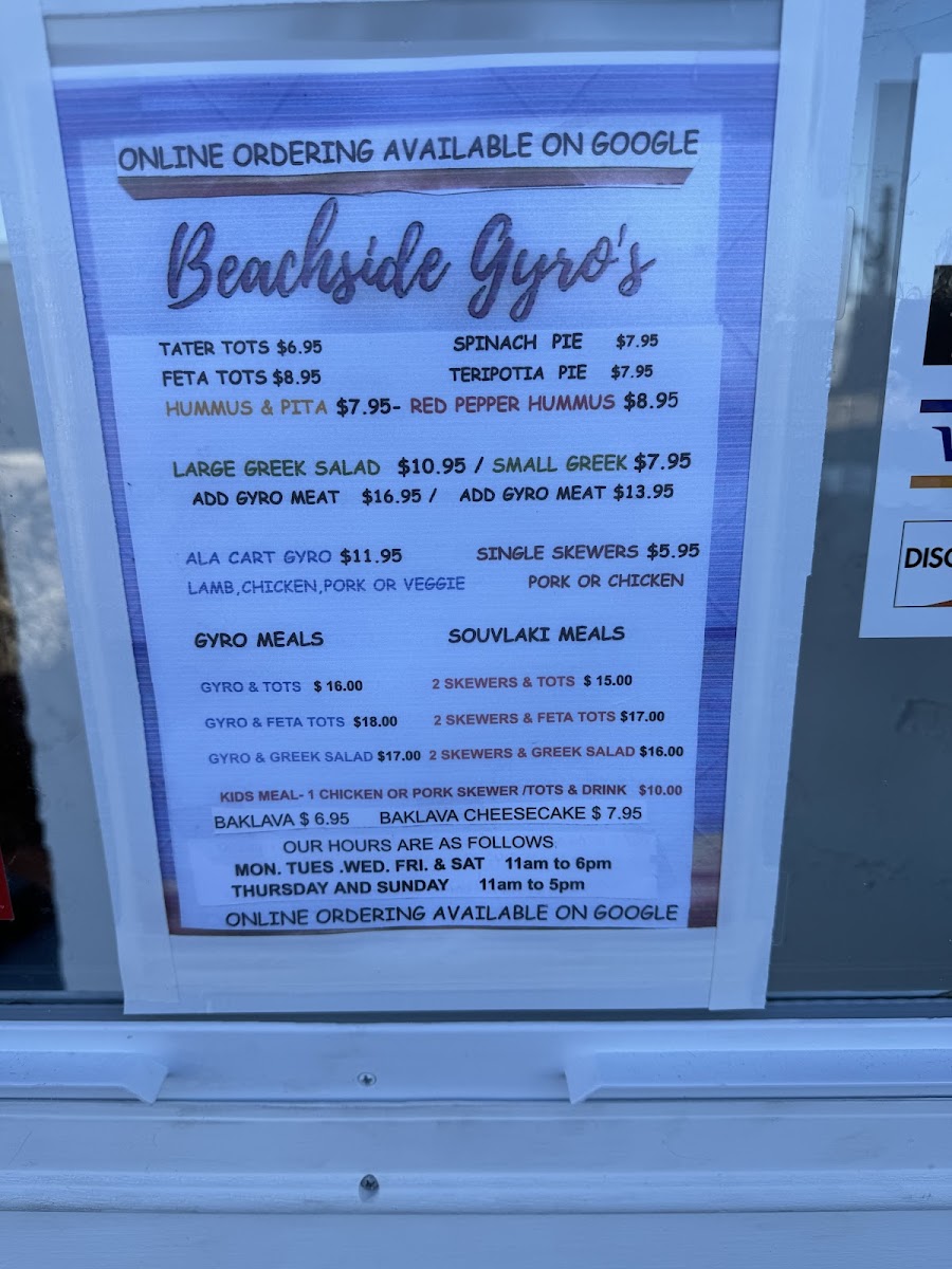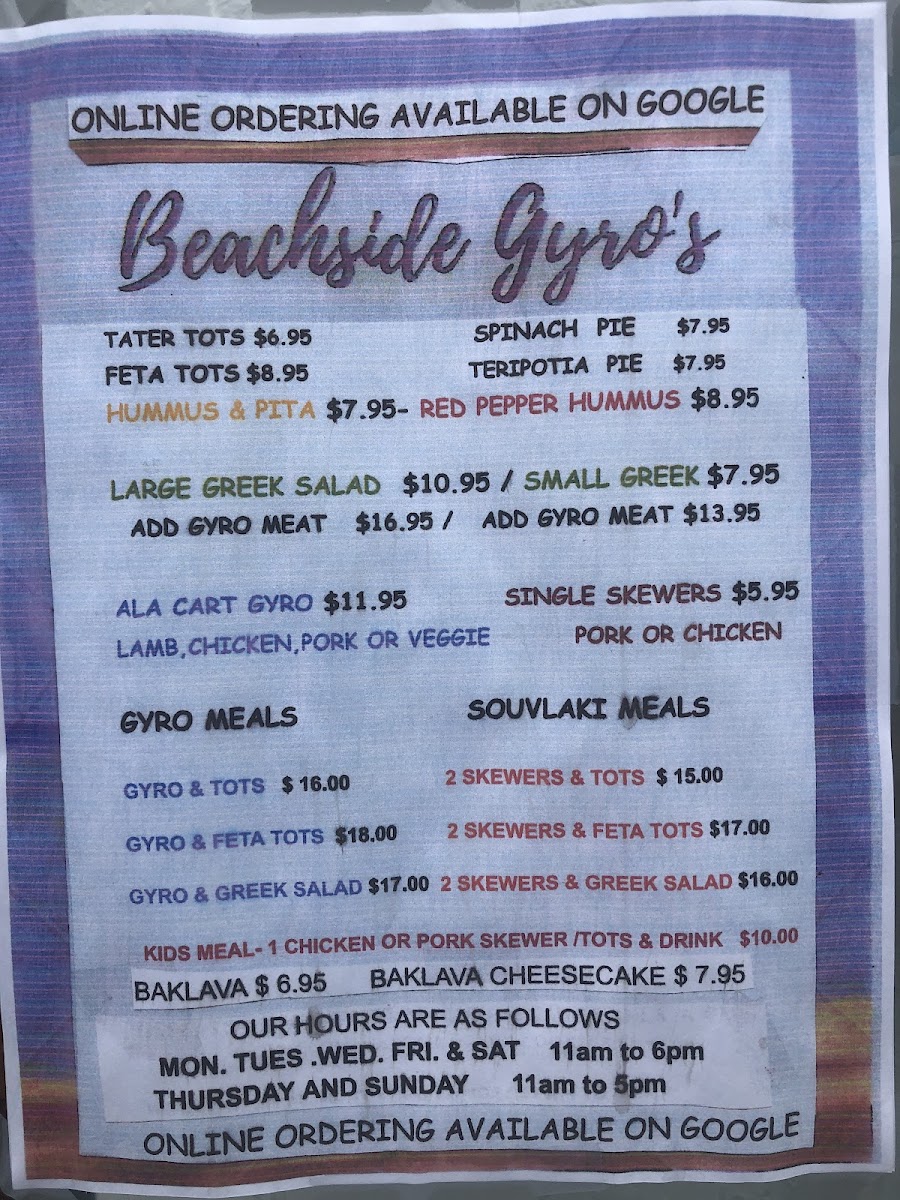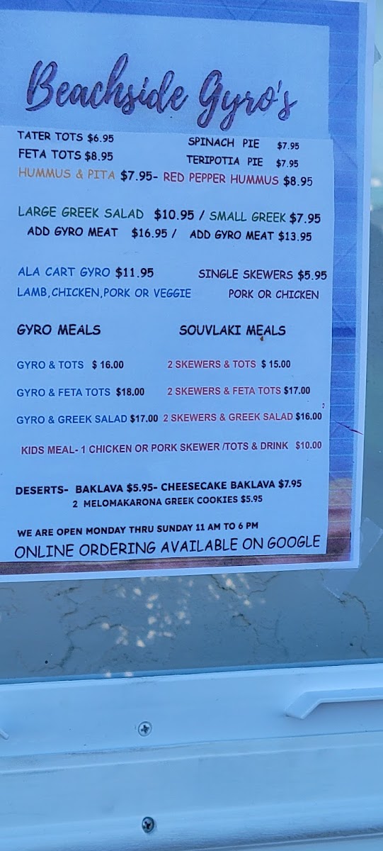 Beachside Gyro's Menu